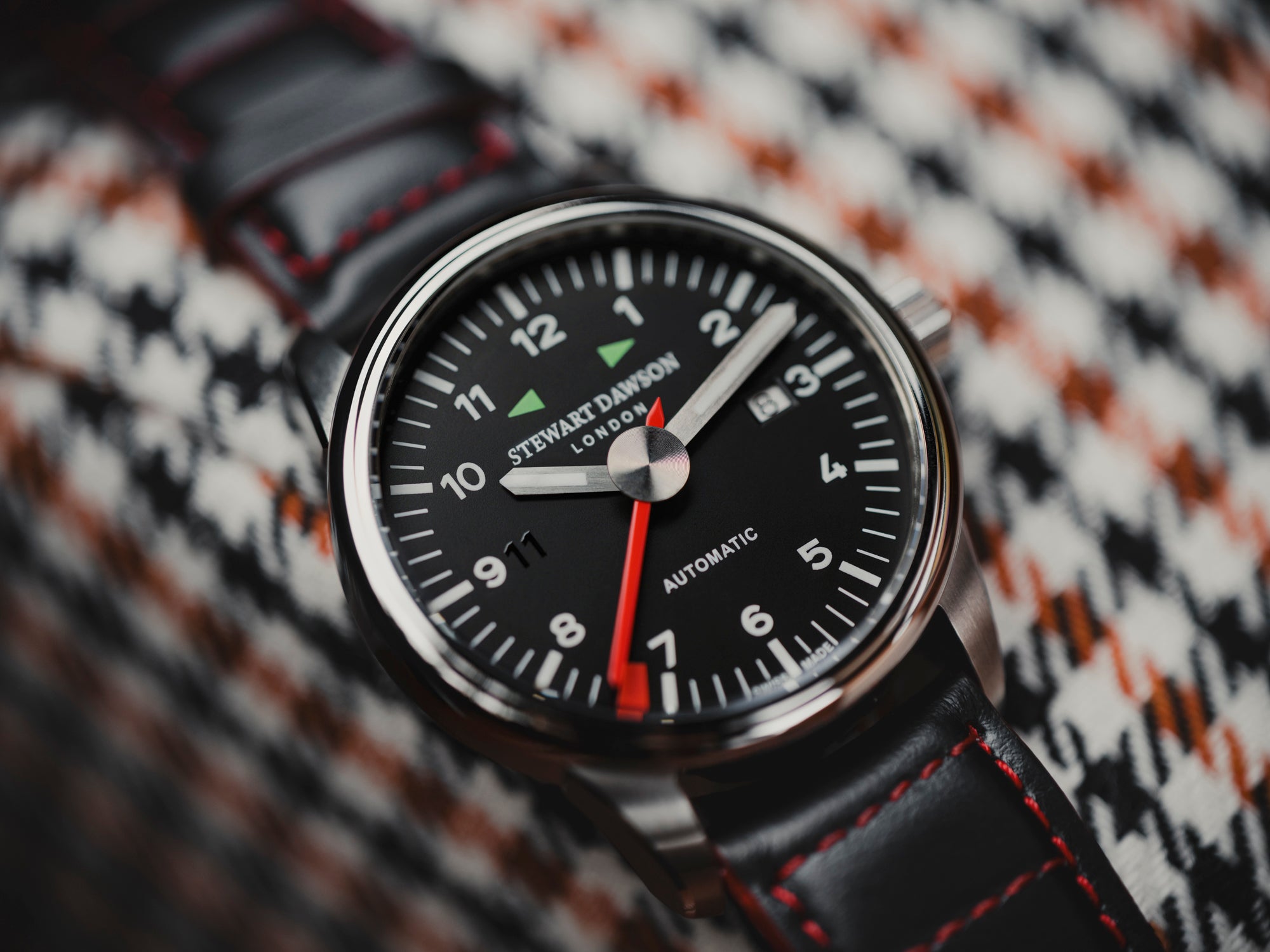 The red seconds hand adds a sense of rhythm and urgency. Beneath the steel case back, the Sellita SW200-1 movement ticks with a steady pulse, its mechanical heartbeat echoing the sound and precision of the car’s engine, a miniature motor built for enduring performance.